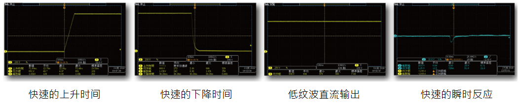 ? 瞬時反應(yīng)與開關(guān)機時間測試:以低紋波、高精度、高穩(wěn)壓率的特性,搭配快速的反應(yīng)速度和爬升率,適合高效率地模擬各種直流電源測試。