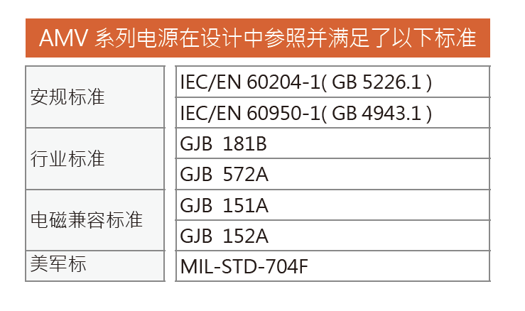 AMV 系列在設(shè)計(jì)上,皆符合MIL-STD-704F,確保電源特性能符合行業(yè)測(cè)試要求。