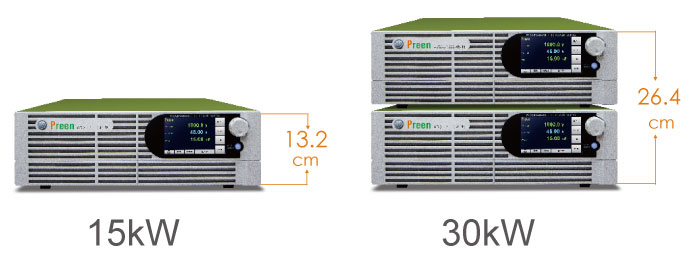 ADG-L 系列電源供應器采用 PWM 開關技術,并搭配DSP 數位訊號處理,具有高功率密度及重量輕的特點,15kW 僅只有 3U 高 (13.2cm),并機后可達 30kW 且僅6U 高 ( 26.4cm)。采取 19 英吋機架式電源設計,方便系統集成和彈性的空間規畫使用。